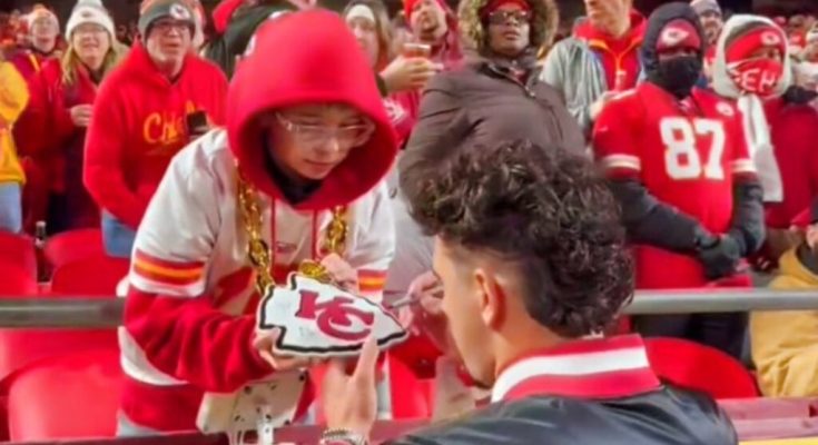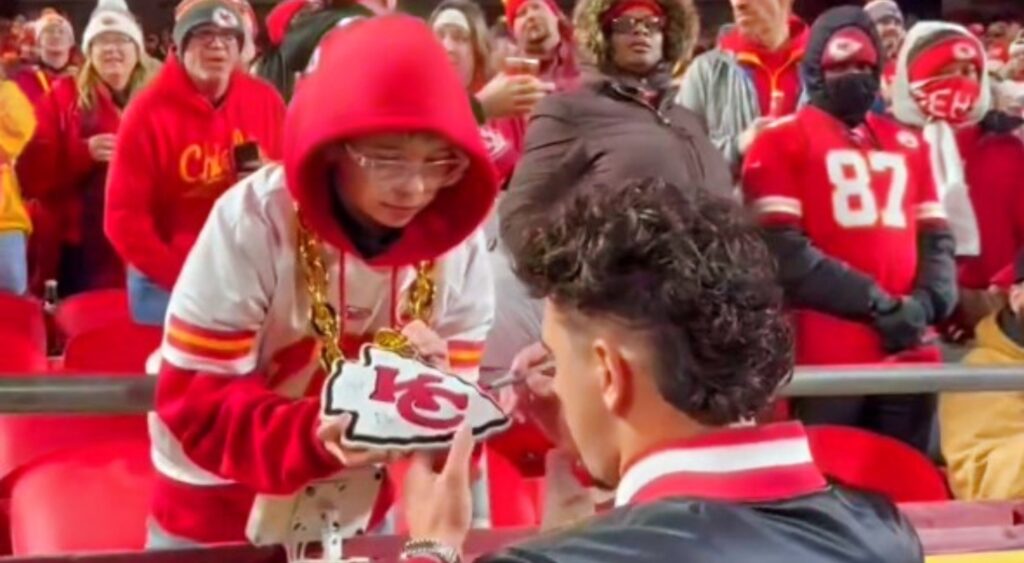 The Patrick Mahomes look-a-like was also signing Chiefs gear as if he was part of the team.