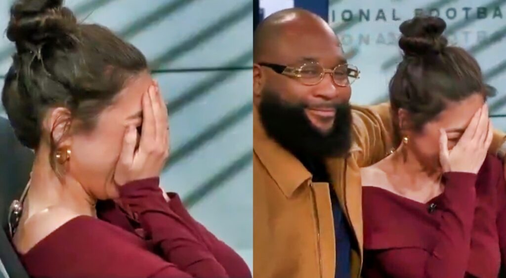 Kimes, a staple on the network’s ‘NFL Live’ show, is a consummate professional who excels at her job, but even pros can fail to find a sense of where the cameras are sometimes, which was the case with Kimes this week.