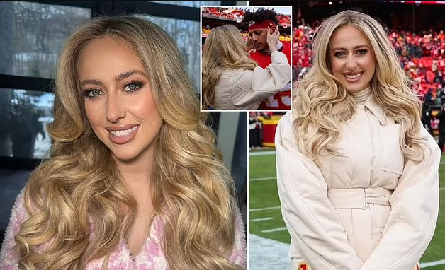 In social media posts from her husband’s 23-14 victory over the Houston Texans in the NFL Divisional Round on Saturday, Brittany was spotted with her two eldest children—Sterling, 3, and Bronze, 2—while Patrick spoke from the podium.