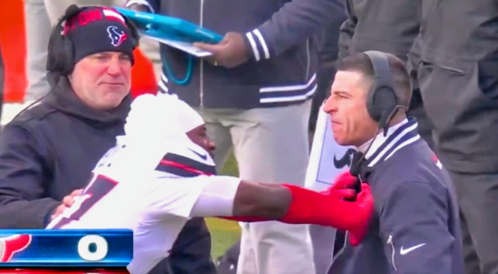 While Mahomes and Kelce’s playoff performance may have been a topic during the game, it wasn’t all fans were talking about, as on the very first kick-off of the game, a huge moment happened on the Texans’ sideline.
