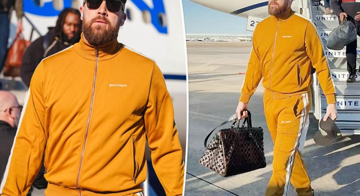 Travis Kelce arrived in New Orleans with the Kansas City Chiefs ahead of Sunday’s 2025 Super Bowl in a fashionable travel outfit.