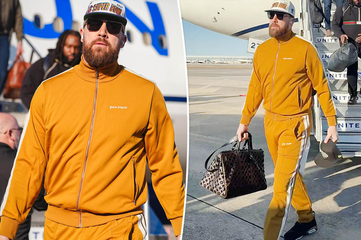 While Kelce, 35, is partial to a Palm Angels tracksuit — he wore a green version to cheer on his brother, Jason Kelce, and the Philadelphia Eagles in 2023 — gold is also one of the his team’s colors.