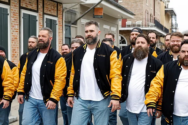 But what’s really stealing the spotlight in New Orleans isn’t just the game – it’s the unexpected invasion of Jason Kelce lookalikes. The former Eagles center, who retired after 13 seasons, has been roaming the city with a group of bearded men who bear a striking resemblance to him. The unique event was organized by the Courtyard by Marriott as part of a promotional campaign and contest that challenged fans to identify the real Kelce from a sea of impersonators. The prize? VIP Super Bowl tickets and a night in the exclusive Courtyard Sleepover Suite at Caesars Superdome. The winning couple, Maris and Donnovan from Texas, successfully identified the real Jason and will enjoy a once-in-a-lifetime experience leading up to the big game.