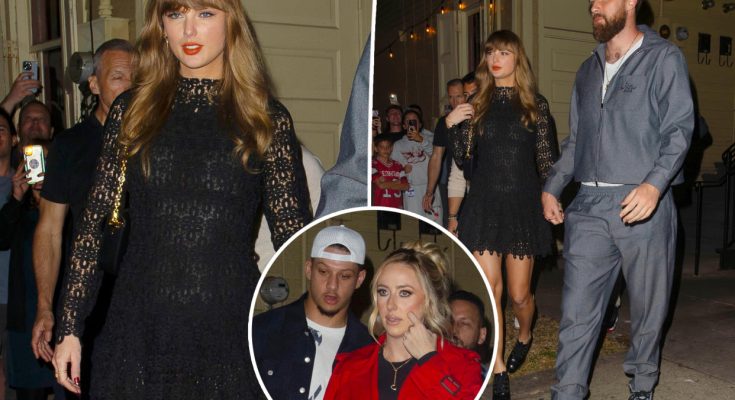 Taylor Swift was a beauty in black for her double date with boyfriend Travis Kelce and pals Patrick Mahomes and Brittany Mahomes in New Orleans Friday night.