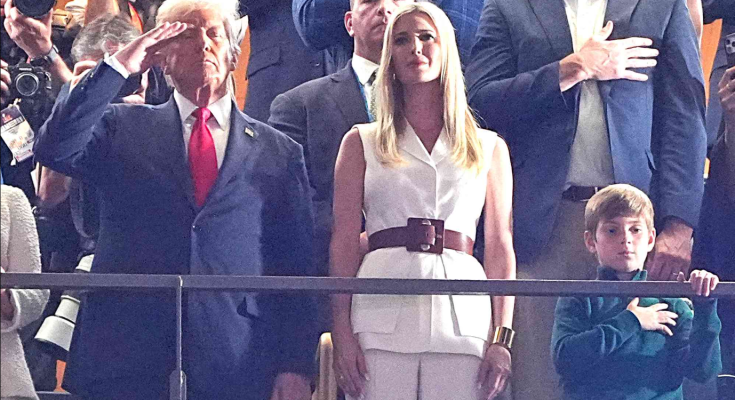 Trump was joined by his daughter, Ivanka Trump, 43, and her son, Theodore James Kushner, 8, in a VIP suite at Caesar’s Superdome.