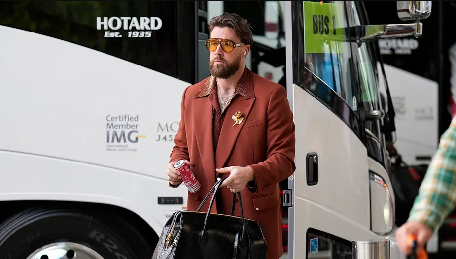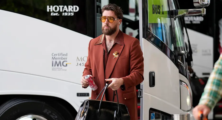 Kansas City Chiefs star tight end Travis Kelce headed into the Caesars Superdome in New Orleans on Sunday for Super Bowl LIX channeling his inner ‘70s.