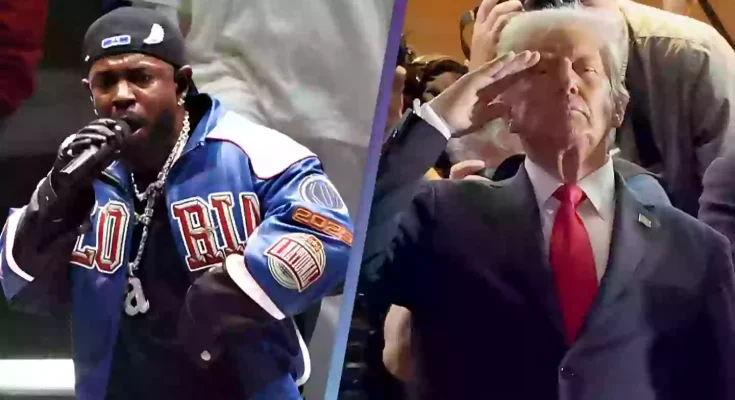 As fans have taken to Twitter to discuss the ‘hidden meanings’ behind Lamar’s halftime show, others believe the rapper took aim at President Trump with a subtle lyric change in one of his tracks.
