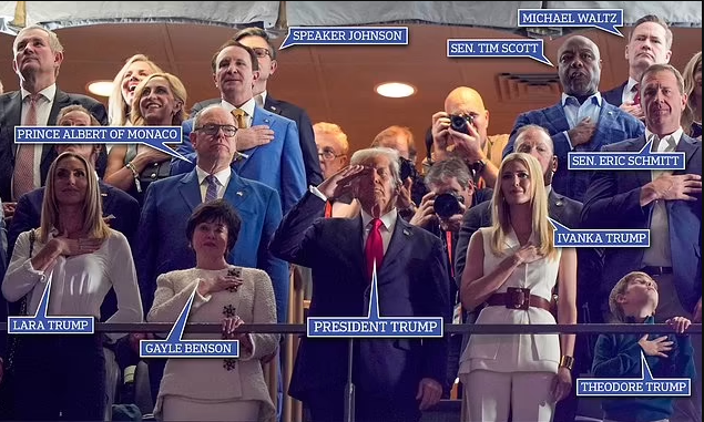 Senator Tim Scott of South Carolina, Eric Schmitt of Missouri and National Security Advisor Michael Waltz were also seen in the president’s suite.