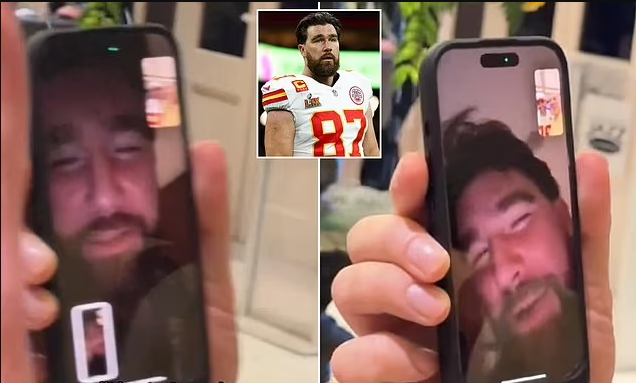 The group shared video of Kelce on the phone to them on their TikTok, with Kelce being told by them: ‘We just played your f***ing party.’