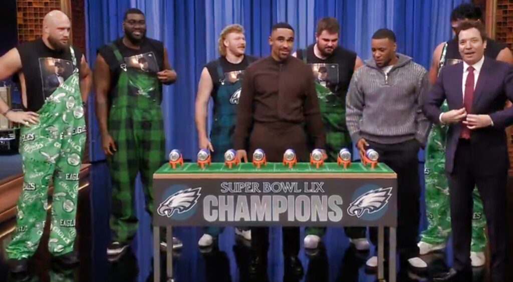 The Eagles quarterback and first-year teammate Saquon Barkley joined host Jimmy Fallon on ‘The Tonight Show’ this week following their 40-22 win over the Kansas City Chiefs on Sunday and discussed several things, including the viral video of the running back shotgunning a beer.
