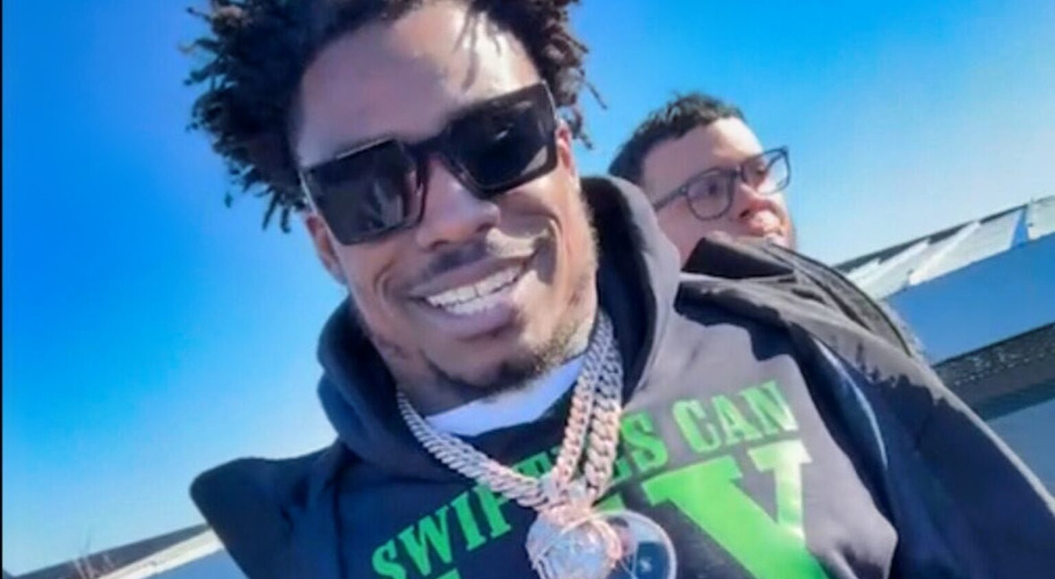 He came out wearing an interesting fit, donning a black hoodie bearing the words, “Swifties Can LIX My B**ls.”