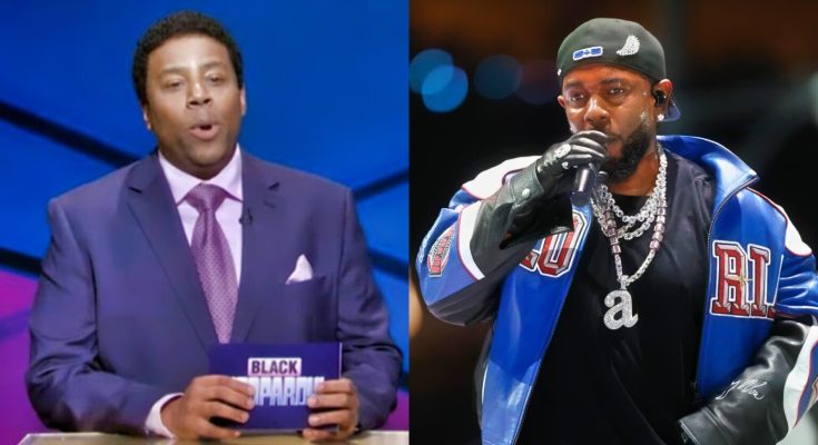 “Welcome to ‘Black Jeopardy,’ the only ‘Jeopardy’ where every single viewer fully understood Kendrick’s halftime performance,” Thompson stated, which was a direct reference to Kendrick Lamar’s Super Bowl appearance and how some viewers claimed that they couldn’t understand a word he said.