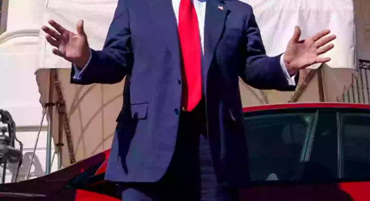 Speaking to the crowd, Trump concluded: “Here’s the bad news. I’m not allowed to drive the car