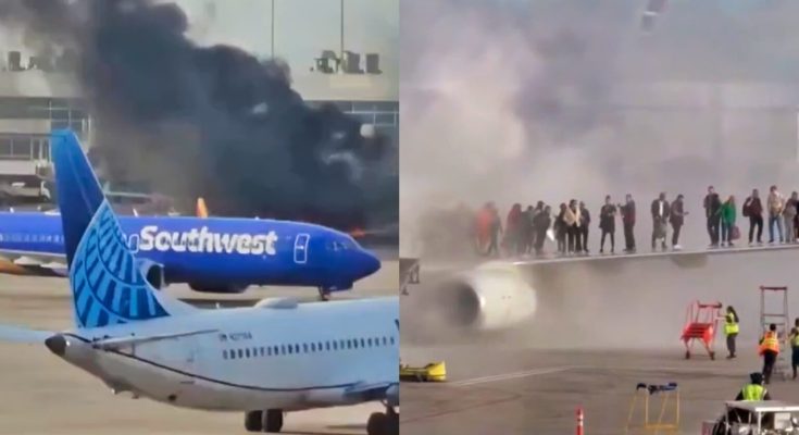 According to CNN, the engine of an American Airlines Boeing 737-800 plane that was departing for Dallas Fort-Worth caught fire as black smoke filled the area. Passengers and crew members were forced to evacuate onto the plane’s wing for their safety.