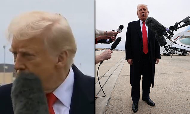 Donald Trump had to shake off a bizarre moment when a boom microphone whacked him in the face during a press gaggle at Joint Base Andrews in Maryland.