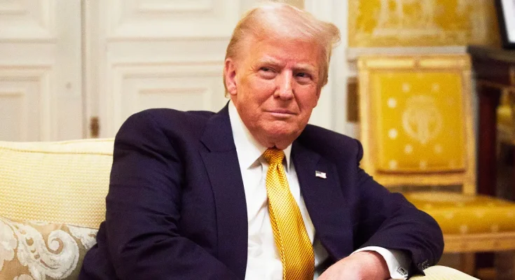 U.S President Donald Trump arrives for a St. Patrick’s Day event with Irish Taoiseach Micheál Martin in the East Room of the White House on March 12, 2025, in Washington, D.C. | Source: Getty Images