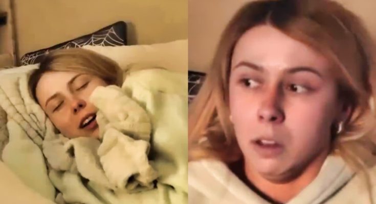 In the video, she can be seen snoring while in bed as the camera pans to a cross in a graveyard. The cross reads “RIP Haliey Welch” and has the dates June 11 and December 4 written on it.