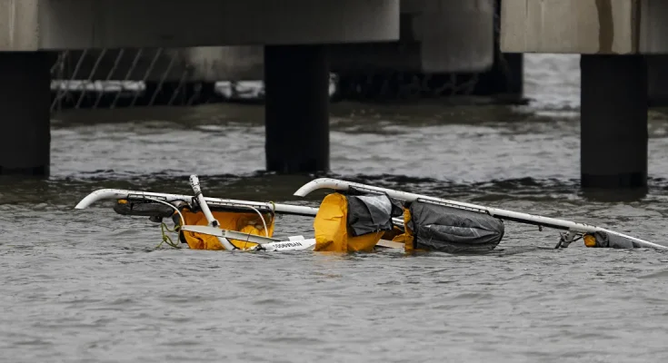 One of its rotor blades detached midair, and the aircraft nosedived straight into the river. Bowlin recounted seeing debris hurtling in the direction of the boat, intensifying her fear — especially for her daughter, who was with her at the time.