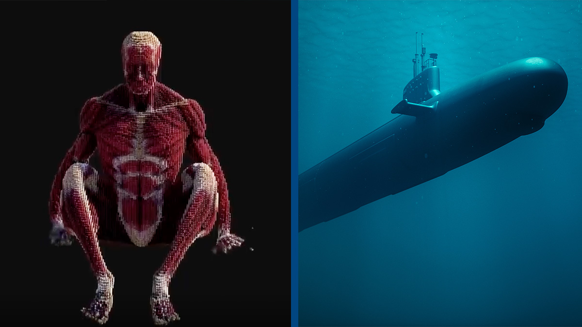 A slow-mo version of the implosion sees the submarine being crushed from all angles and shattering into pieces. It also has a bloodier view, showing a simulated body being similarly concertinaed and then blasted out with other parts of the sub. This matches up with the Coast Guard stating that presumed human remains were found among the wreckage, which were later used to identify the five victims via their DNA.