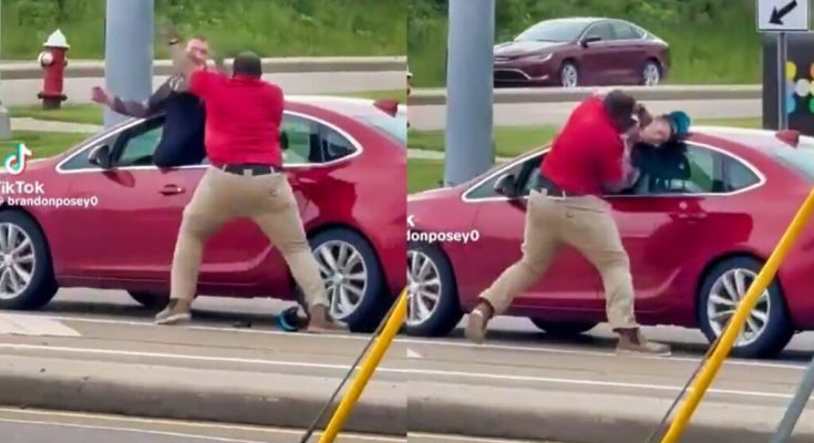 The video below shows Peterson throwing a flurry of punches at another male through a car window. It’s said that the guy had spit on the former college star right before the recording started.