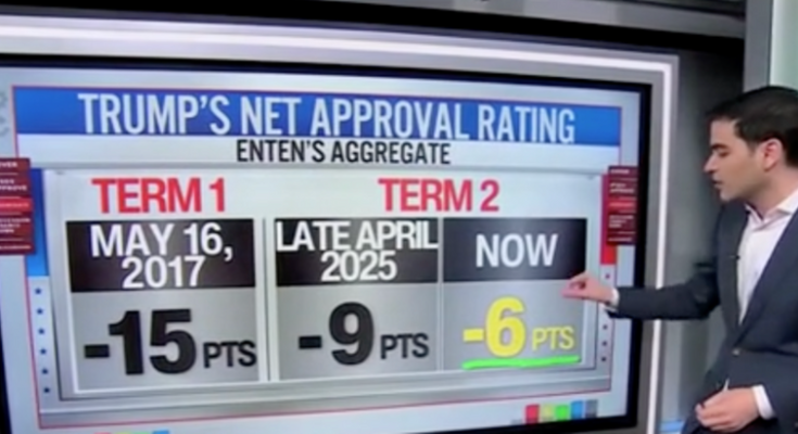 “So we see, Donald Trump isn’t just doing better than he was doing in late April of 2025, he’s doing considerably better than he was doing at this point in term number one,” Enten said.