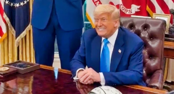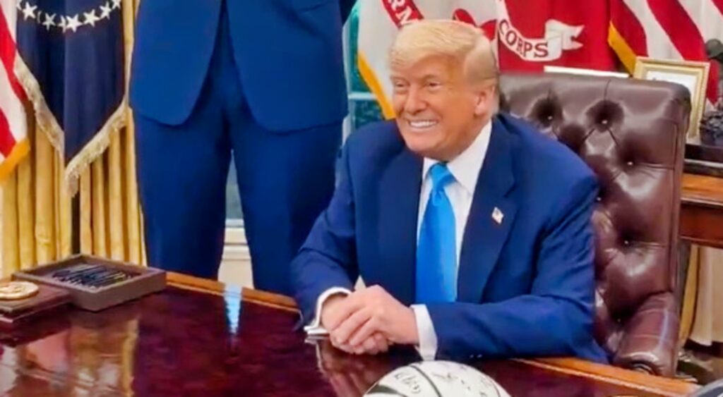 Margo Martin, a Special Assistant to the President and Communications Advisor, shared a video of the 7-foot-9 Olivier Rioux walking over to meet the president at his desk. Trump called him “a beautiful-looking guy,” and said “it’s great” to be that tall.