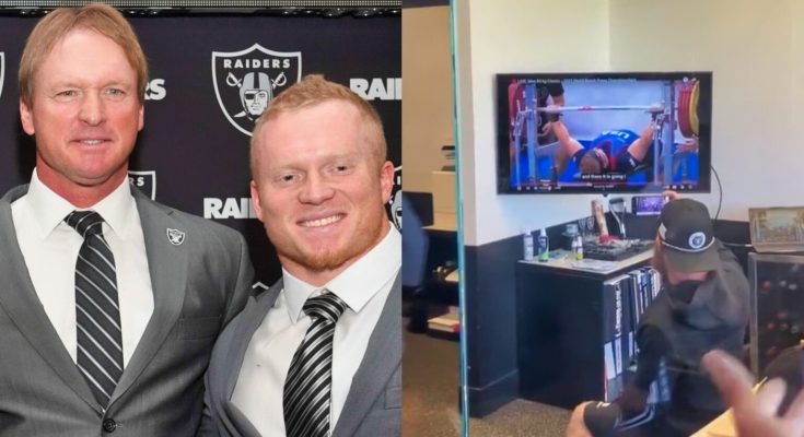 Las Vegas Raiders players were going crazy watching Jon Gruden’s son, Deuce, go full “beast mode” at the IPF Powerlifting World Championships on television.