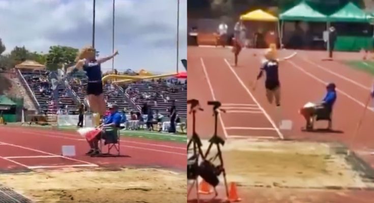 AB Hernandez, who was born a male, jumped 19′ 3.5″ while the “second” place jumper, Kaylee Best, a female, jumped 19′ .75.”
