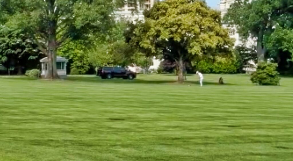 DeChambeau was spotted playing golf on the White House’s South Lawn on Monday evening after the lawn was reportedly turned into a par 3 course.