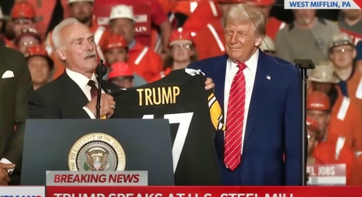 During Friday’s rally, Bleier called Trump a “Hall of Fame President” when he presented him with a custom No. 47 jersey and declared him an “honorary Steeler.”