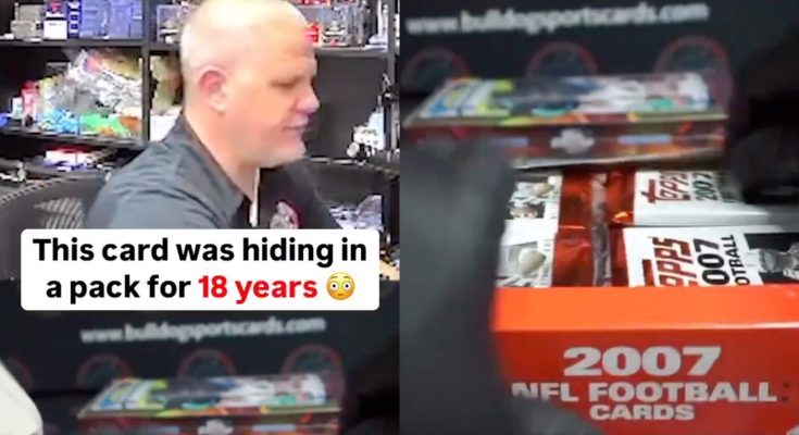 Topps recently shared a video of Bulldog Sports Cards opening up a pack of their football cards from a 2007 collection. During the live stream, he was thrilled to realize that he had come across a rare Tom Brady card that sat in the unopened pack for 18 years: