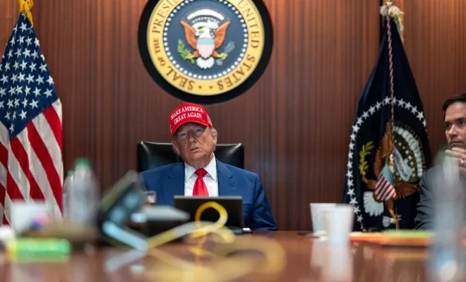 President Donald Trump holds a meeting in the Situation Room at the White House on June 21, 2025.