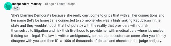 Some of the most pointed commentary on Cammack’s attempts to shift responsibility and delude herself came from Reddit’s medicine subReddit—a forum for medical professionals from around the world to discuss medical advances and setbacks.