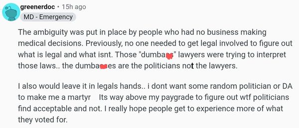 “We can all agree you should not need to be an expert in law to practice Obstetrical care.”