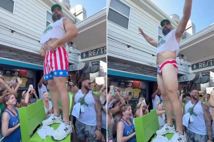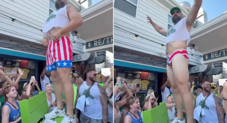 “That’s pure Jason Kelce right there. Most players retire and disappear. Kelce climbs on a lifeguard chair in a flag Speedo because he genuinely loves his people,” one comment read.