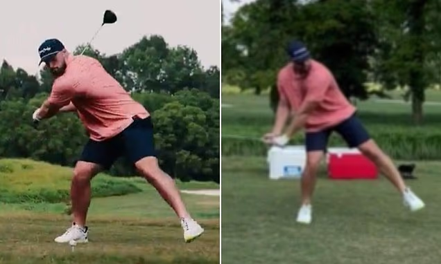The 6-foot-5, 255-pound tight end tried to walk up to the ball instead of hitting it with his driver while stationary.