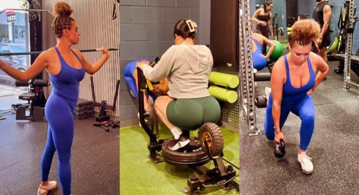 This time around, Taylor wasn’t at a vacation destination or on a beach; she was putting in the work in the gym to show fans how she keeps her body in tip-top shape.