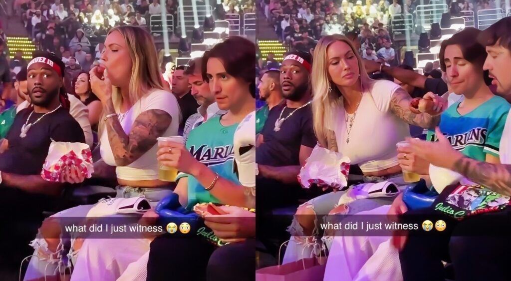 Camera caught a woman sitting ringside at the Jake Paul fight vs. Julio Chavez Jr. deepthroating a sausage before putting it back into a bun and handing it to a male who immediately began chomping on it.