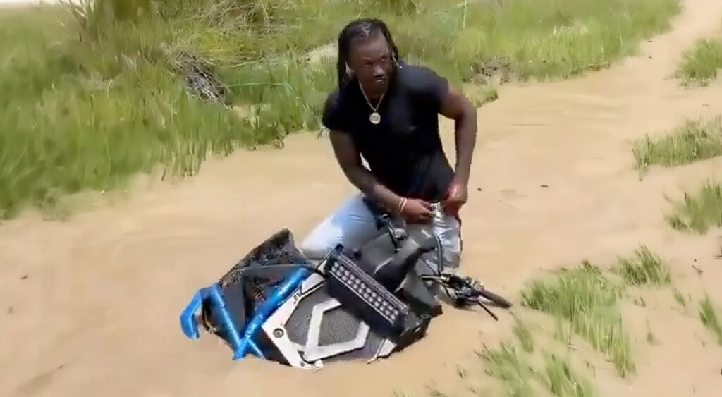 Legette appears to hand his cellphone to a friend that’s filming the entire saga as it unfolds. The second-year wide receiver gives the man tips on how to get the ATV out, before finally deciding to hop in the mud and help his companion lift it out: