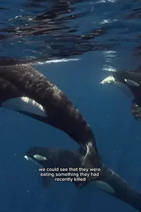 “This was some of the best 30 seconds of my life in the ocean. As this pod of orcas passed us, we could see that they were eating something they had killed,” she narrates over the video clip as it’s happening.