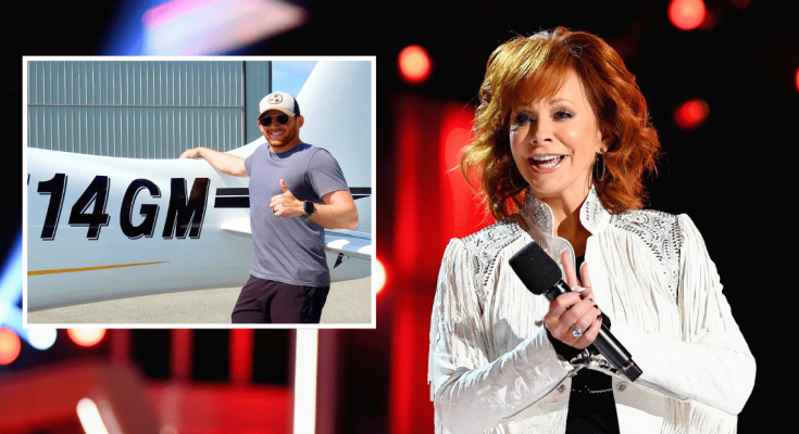 In her post, Reba included two photos. One is of her holding her son as a baby, and the next is showing him all grown up, standing next to the plane he flew.
