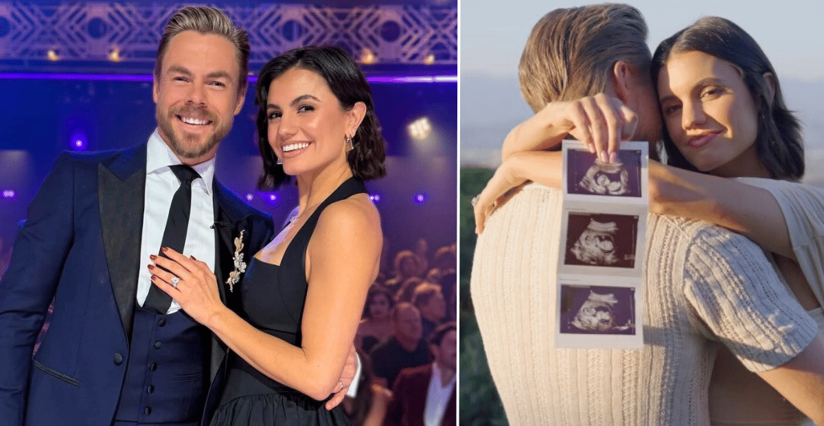 Set to the tune of the Alexander Jean song “So Small,” the video featured Derek walking up to Hayley in slow motion and giving her a loving hug. Hayley wrapped her arms around his neck and showed off ultrasound photos, letting the audience know she is pregnant!