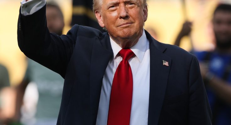 Speaking with reporters on the White House lawn, Trump was asked about the possibility of rebates “with all of that revenue coming in tens and tens of billions of dollars.”