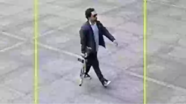 Surveillance video showed the man exiting a double-parked BMW just before 6.30pm carrying an M4 rifle, then marching across a public plaza into the building.