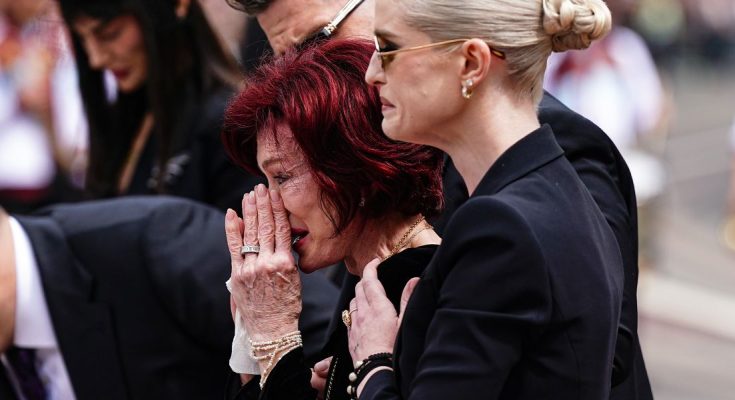 Sharon was leaning on her children for support, her body heavy with sorrow. The pain of losing Ozzy, her husband of many years and partner through every twist and turn of life, was written all over her.