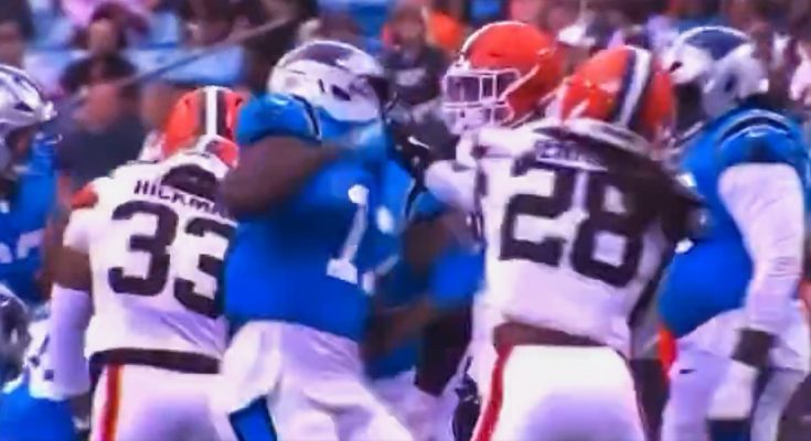 Carolina Panthers wide receiver Xavier Legette and Cleveland Browns safety Rayshawn Jenkins were ejected early in Friday’s preseason opener after a little skirmish quickly escalated into a heated fight.