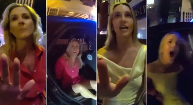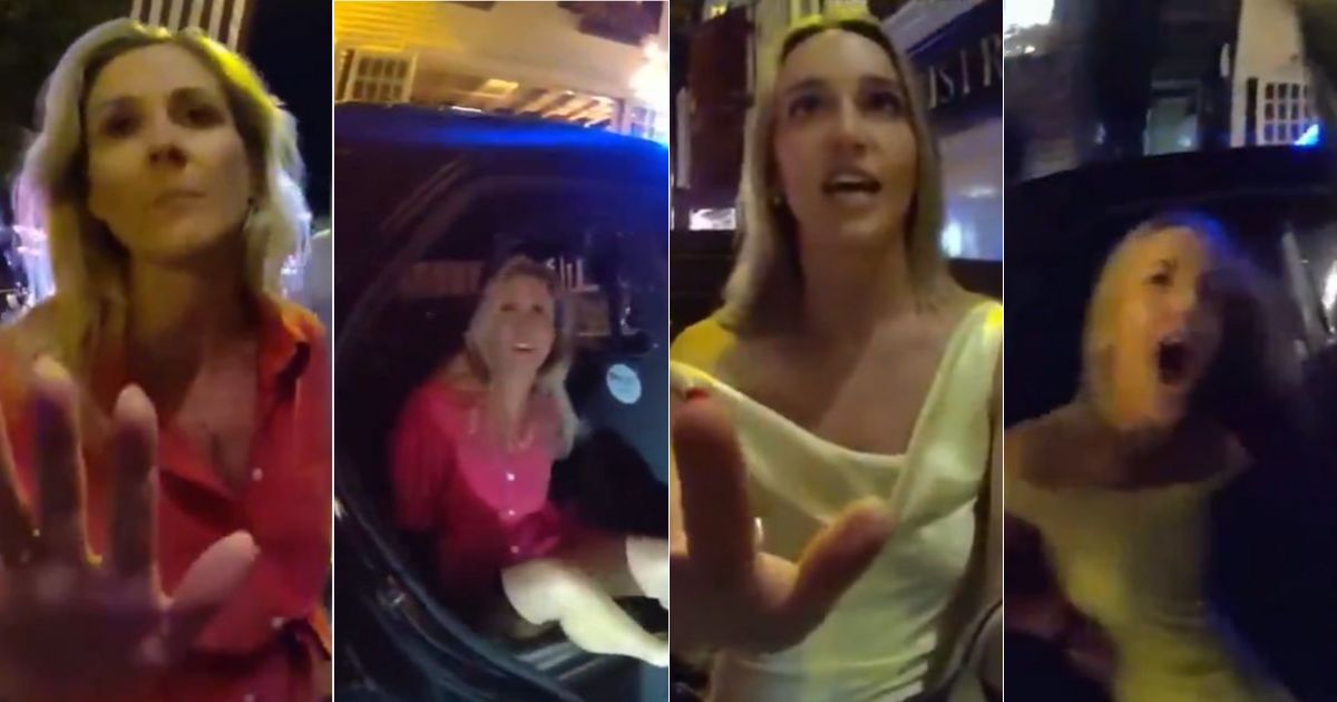 Her friend wasn’t much better, slipping out of handcuffs, cursing at officers, and even trying to block the police cruiser door with her feet.