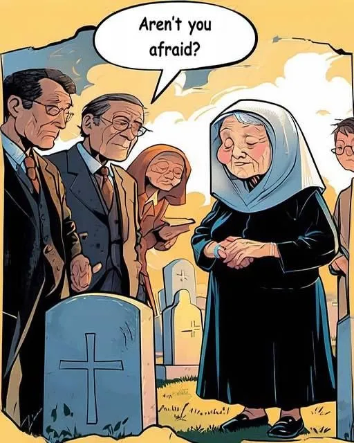 Years passed, and at 98, he finally did pass away. At the funeral, a concerned neighbor leaned in and asked the widow, “Aren’t you worried he might come back to haunt you?”