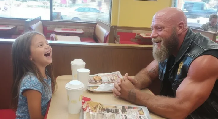 The sun slanted through the McDonald’s windows, illuminating their corner booth like a sanctuary. A big, scary biker and a tiny, innocent girl, sharing Happy Meals and holding onto each other when the whole world seemed determined to tear them apart.
