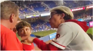 Drew Feltwell attended the game between the Philadelphia Phillies and Miami Marlins with his wife, daughter, and son, Lincoln, for the boy’s upcoming 10th birthday and thought he had gotten him a proper treat after securing a home run ball from Harrison Bader.